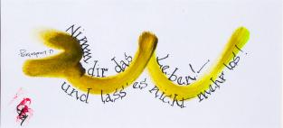 Die besondere Karte. Hier finden Sie ausgewählte kalligraphische Werke mit Tusche, Tinte und Acryl auf Papier in verschiedenen kleineren Formaten. Alle Werke sind Unikate.